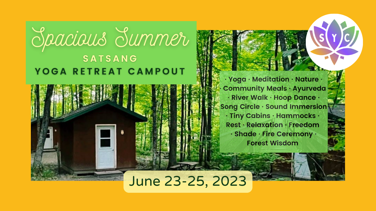 Mark your calendar for our Spacious Summer Satsang Yoga Retreat Campout! Join us JUNE 23- 25, 2023 in person at River Forest Campground (White Lake, WI) for a immersive, yet spacious, weekend together. There will be offerings that support connection to self, community, nature, and the Divine. Tap into the wisdom of the forest....