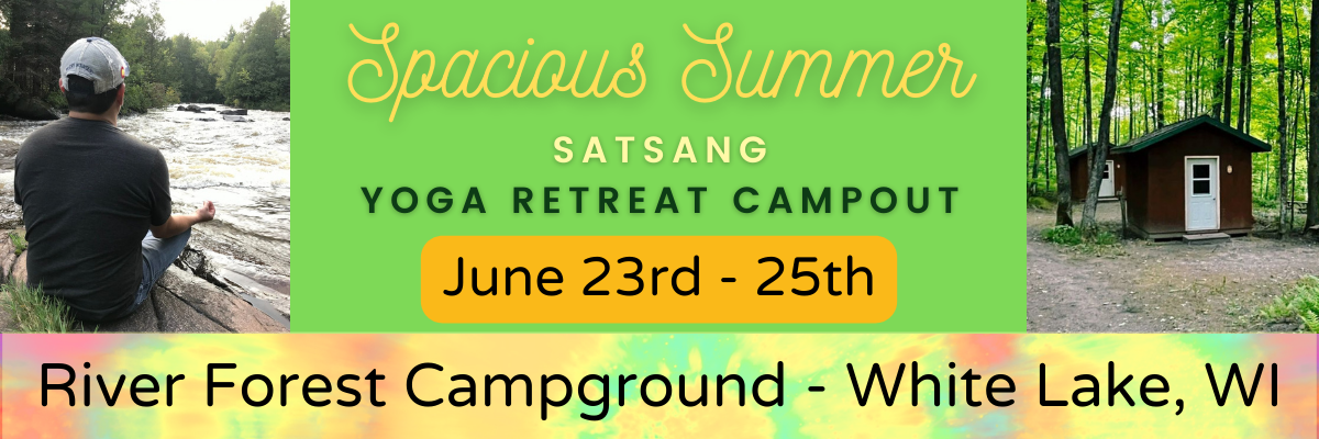 This Summer, we will be gathering in-person at River Forest Campground in White Lake, WI for Spacious Summer Satsang: Yoga Retreat Campout! Come experience the pleasure of connecting with nature, amazing humans, and yourSelf. We will cook together and eat good food. We’ll have opportunities to dance, sing, and laugh together. We will practice yoga and walking meditation in nature's perfect yoga studio - the great outdoors! Join us and get in touch with “forest wisdom”, a yogic concept from the Brihadaranyaka Upanishad, an ancient yogic text dating back to ~9th-6th century BCE. We’d love to celebrate the sensuous beauty of Summer with you!